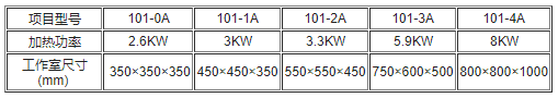 101系列数显电热鼓风干燥箱技术参数: